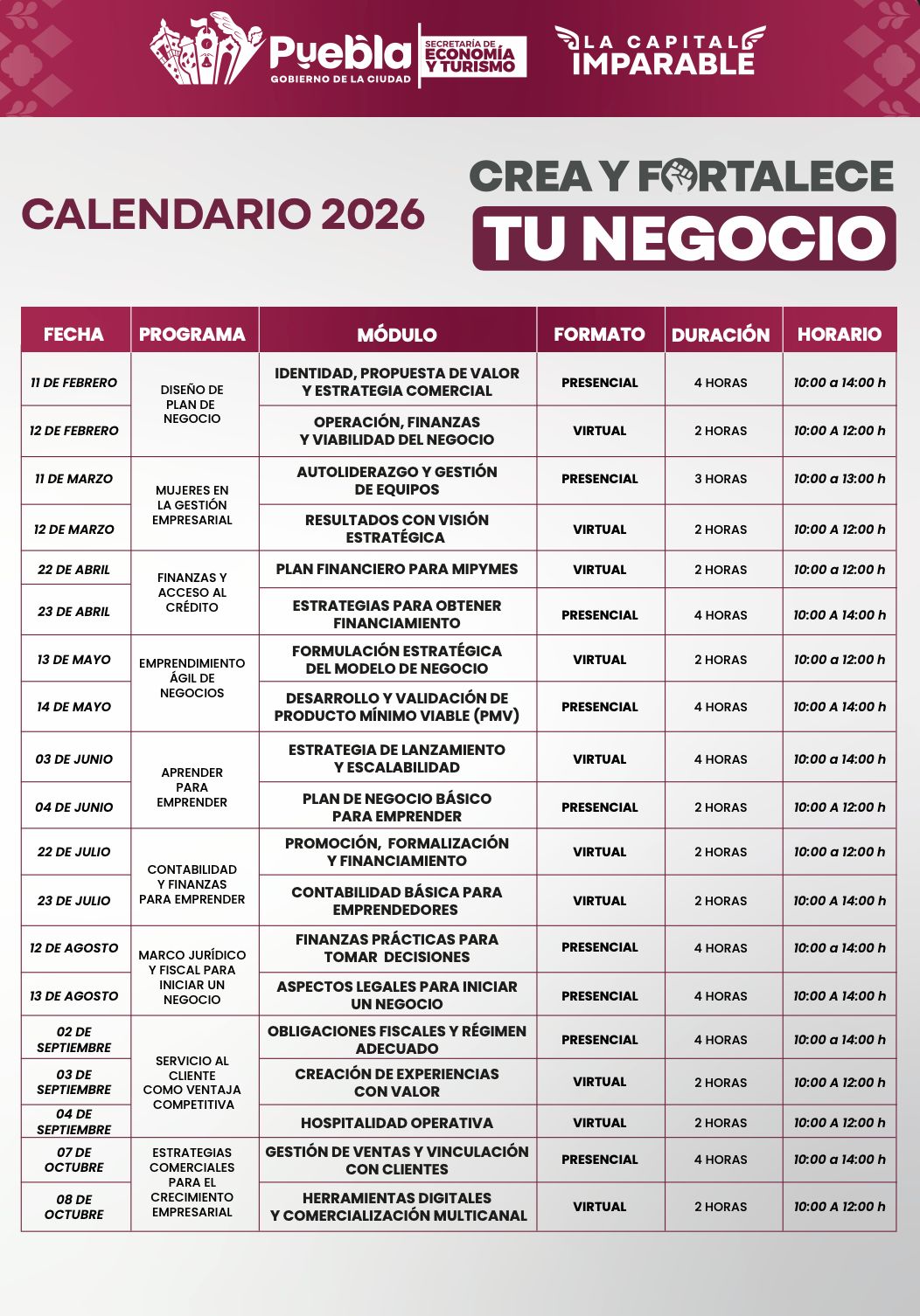 Calendario de Capacitaciones de Crea y Fortalece tu Negocio
